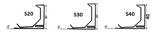 • Схожесть профилирования выступа профилей S20 и S30 ведет к использованию однотипных монтажных скоб и струбцин для профилей всех типов;